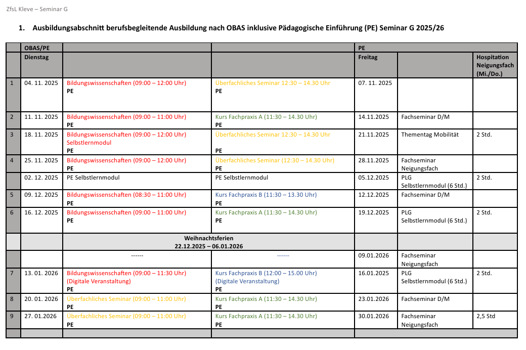 Infobroschüre zur Einstiegsphase in OBAS im ZfsL Kleve